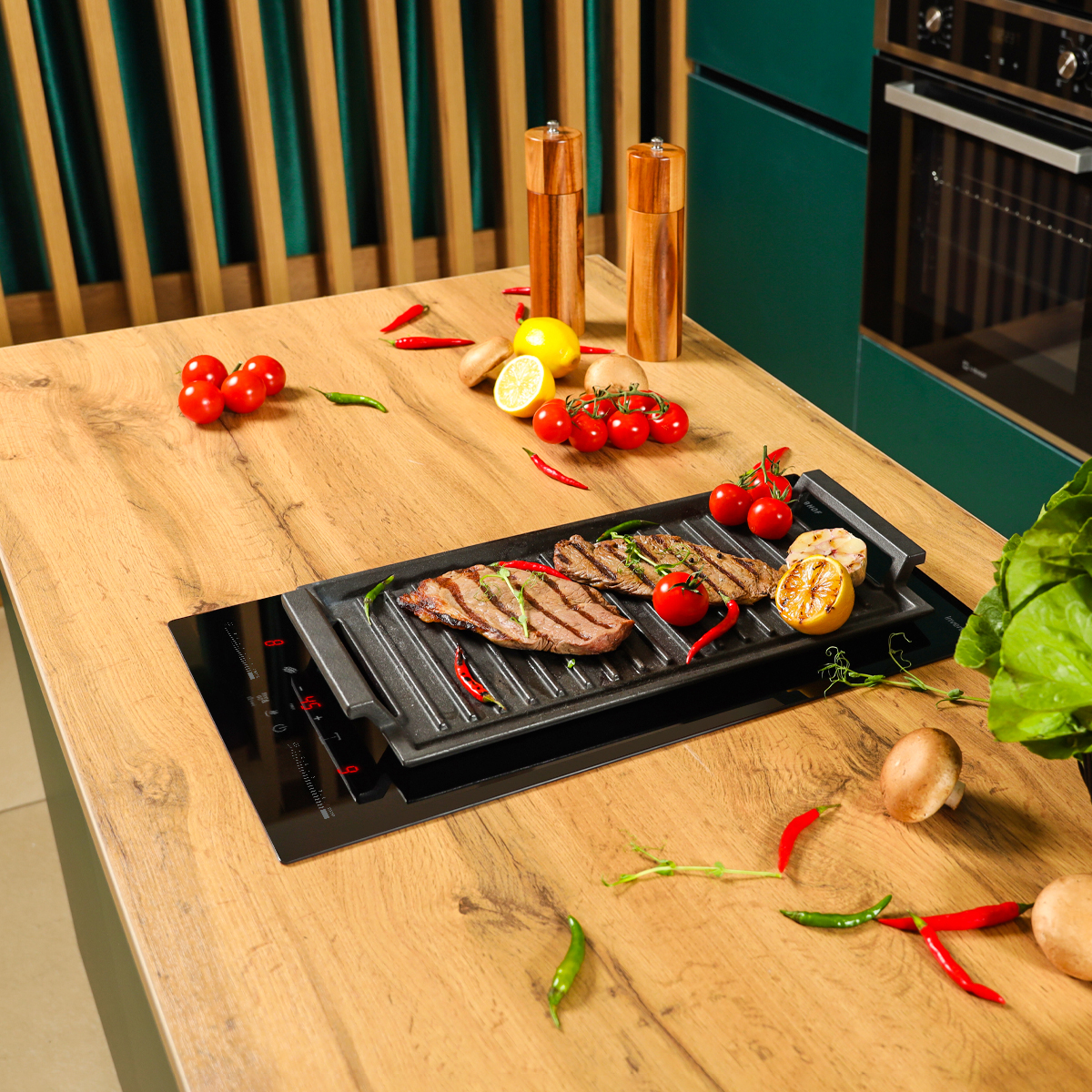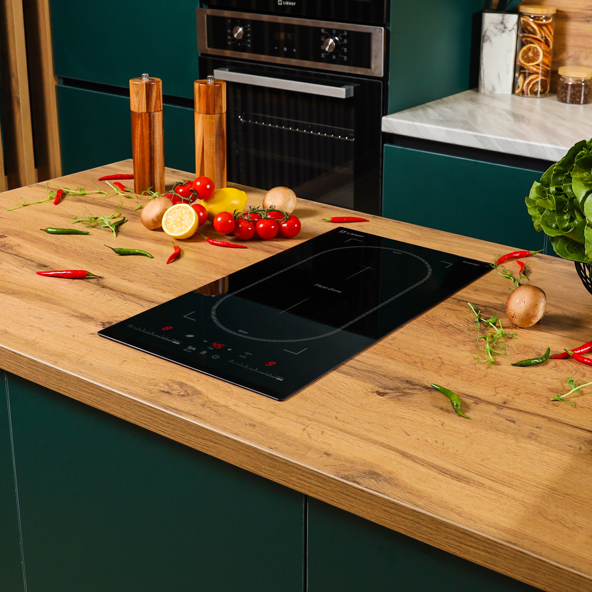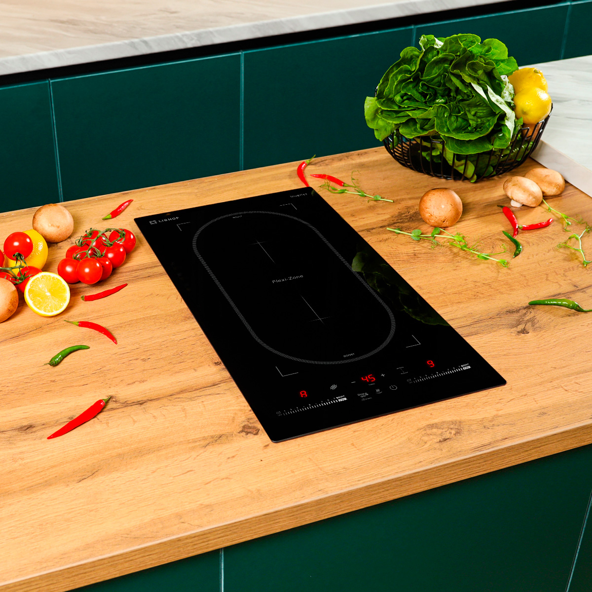 The inverter induction hob maintains a constant temperature, preventing power fluctuations during cooking.
