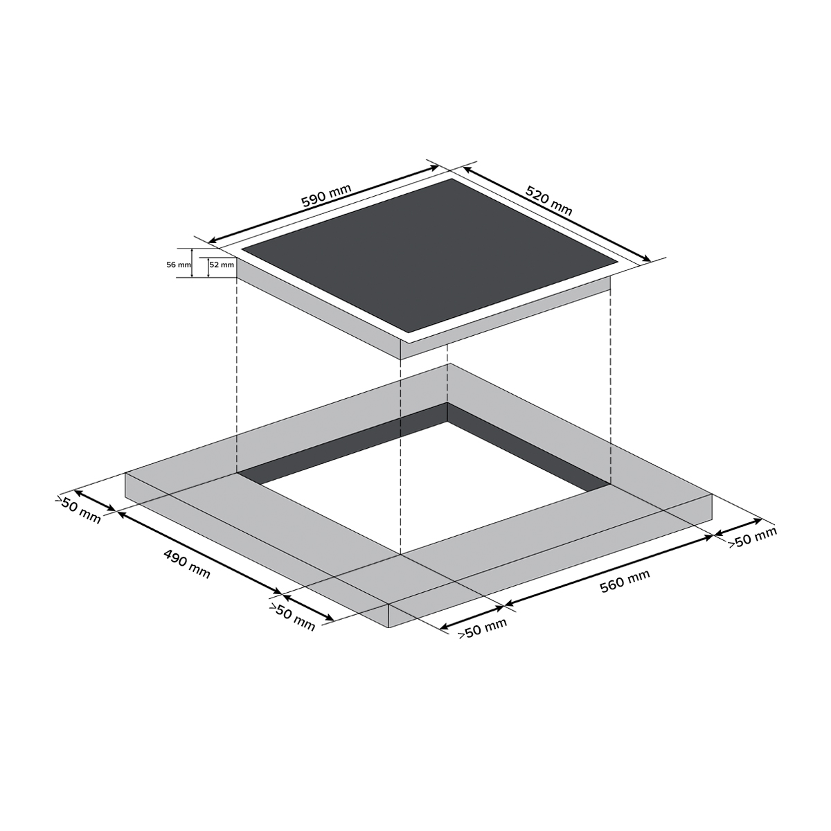 Therefore, meals are prepared faster, and electricity consumption is significantly reduced. This inverter hob maintains a constant temperature, ensuring uniform cooking without power fluctuations.