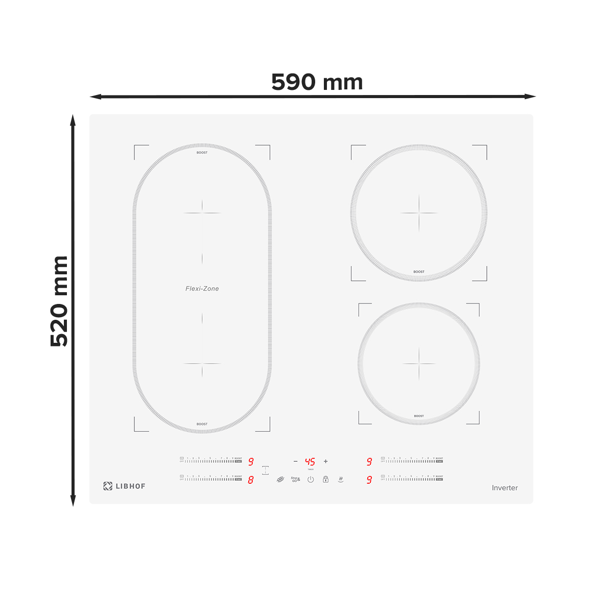 The built-in hob Libhof CH—72604I white with 4 burners is an innovative solution for a modern kitchen. Due to the principle of electromagnetic induction, the dishes are heated quickly and evenly.