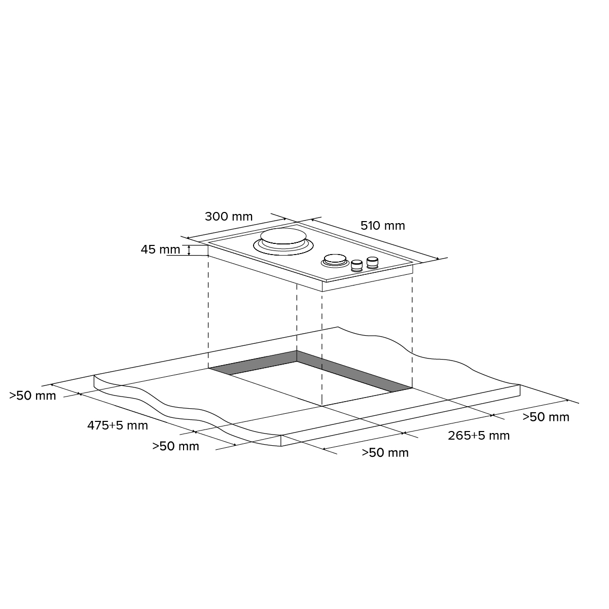 The gas panel is equipped with an electric ignition function, which eliminates the need for matches or lighters. The gas control system provides automatic shut-off of the gas supply when the flame is extinguished.