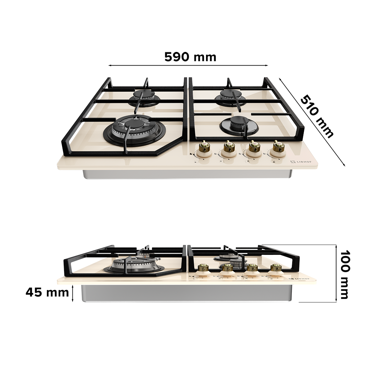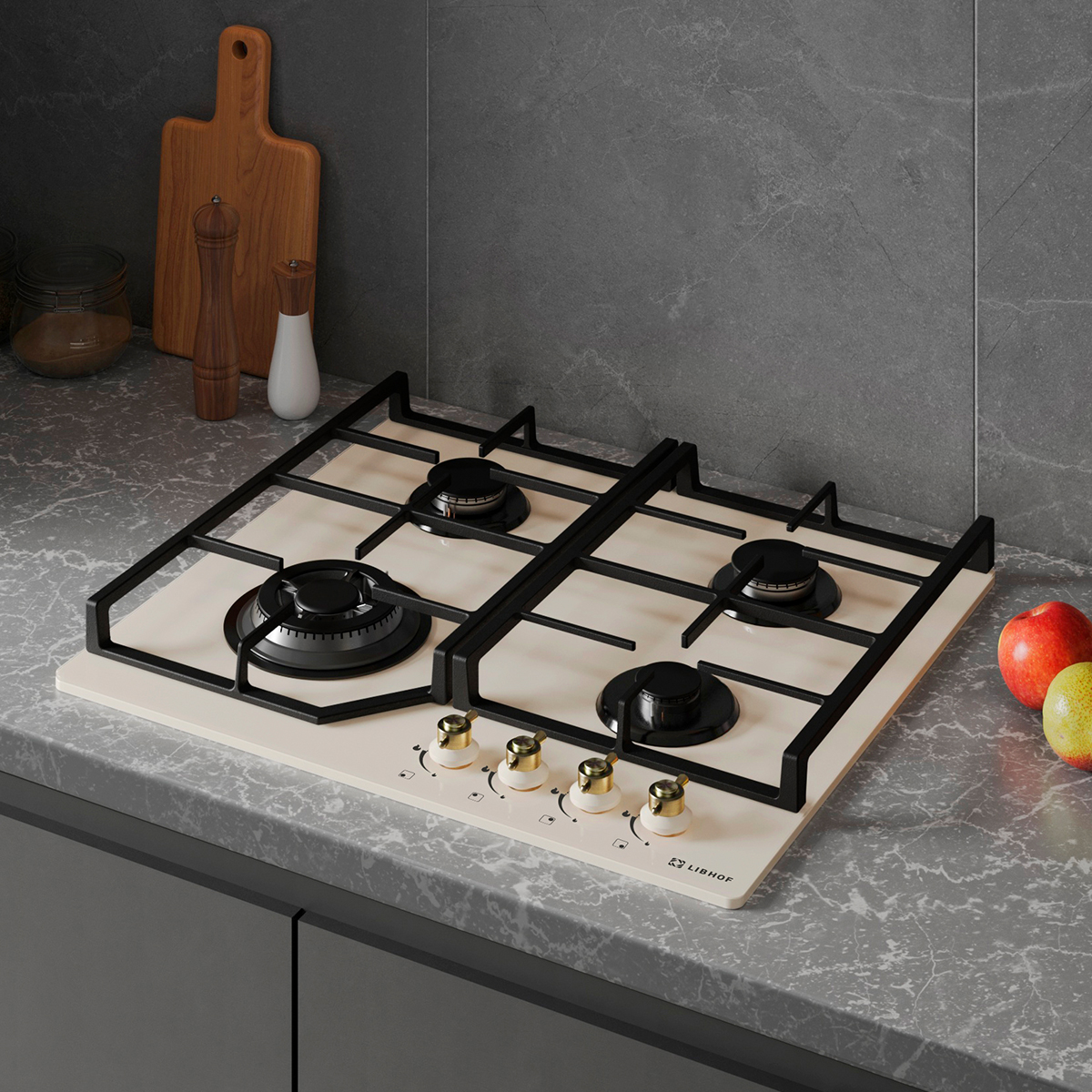 The Libhof GH-604 beige 4-burner gas hob combines all the necessary functions for a modern kitchen.