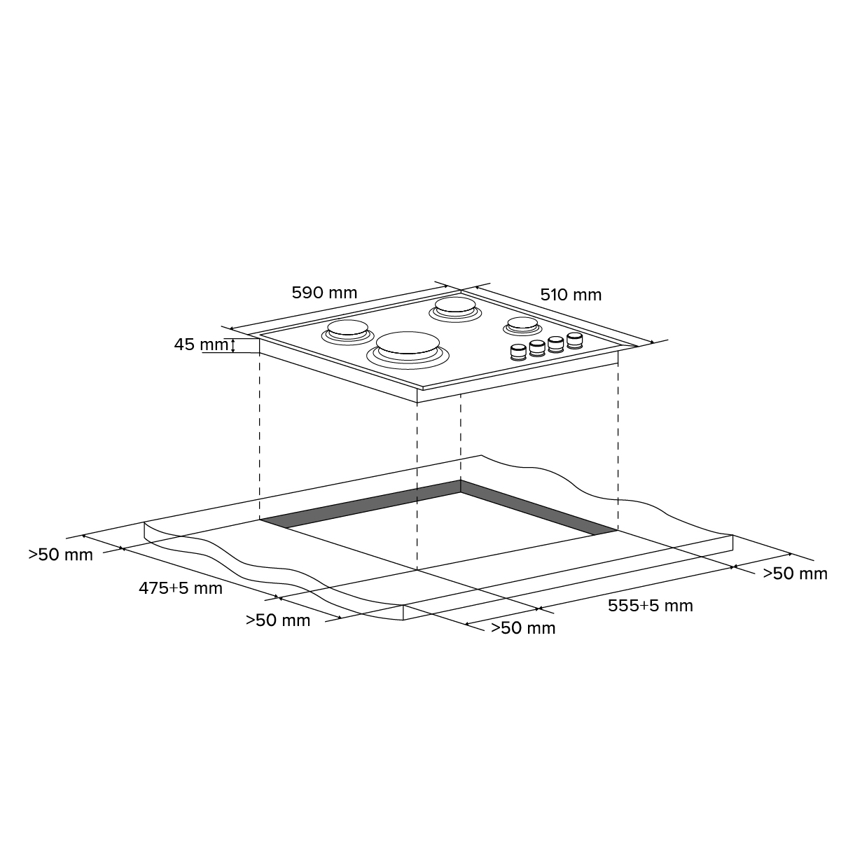 The gas panel is equipped with an electric ignition, which makes it possible to forget about matches and lighters – the burners are started by pressing a button. The gas control system automatically stops the gas supply if the flame goes out.