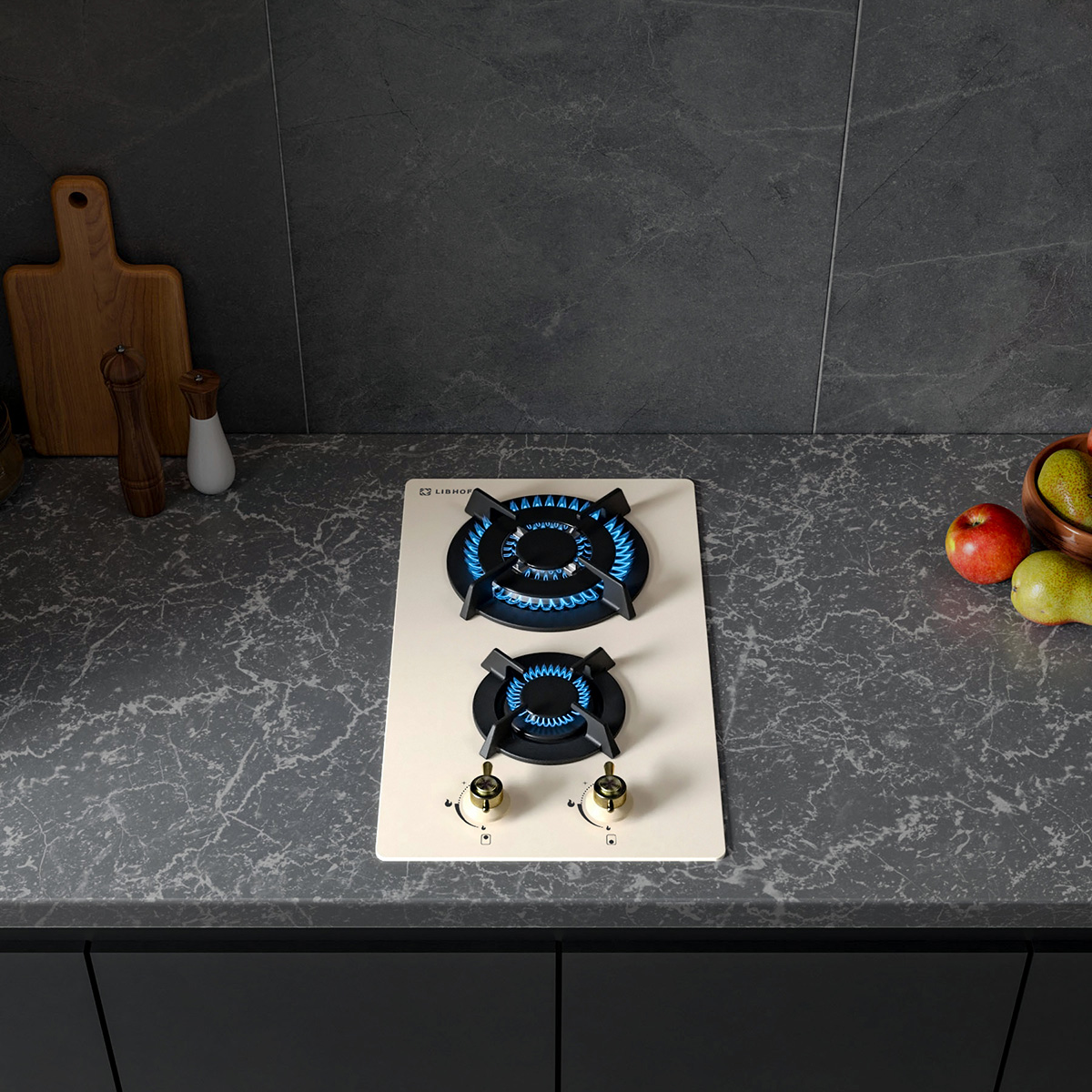 The Libhof IS-302 beige 2—burner gas hob is an excellent solution for small kitchens. It will fit perfectly into the space, saving space and giving the interior a modern look.