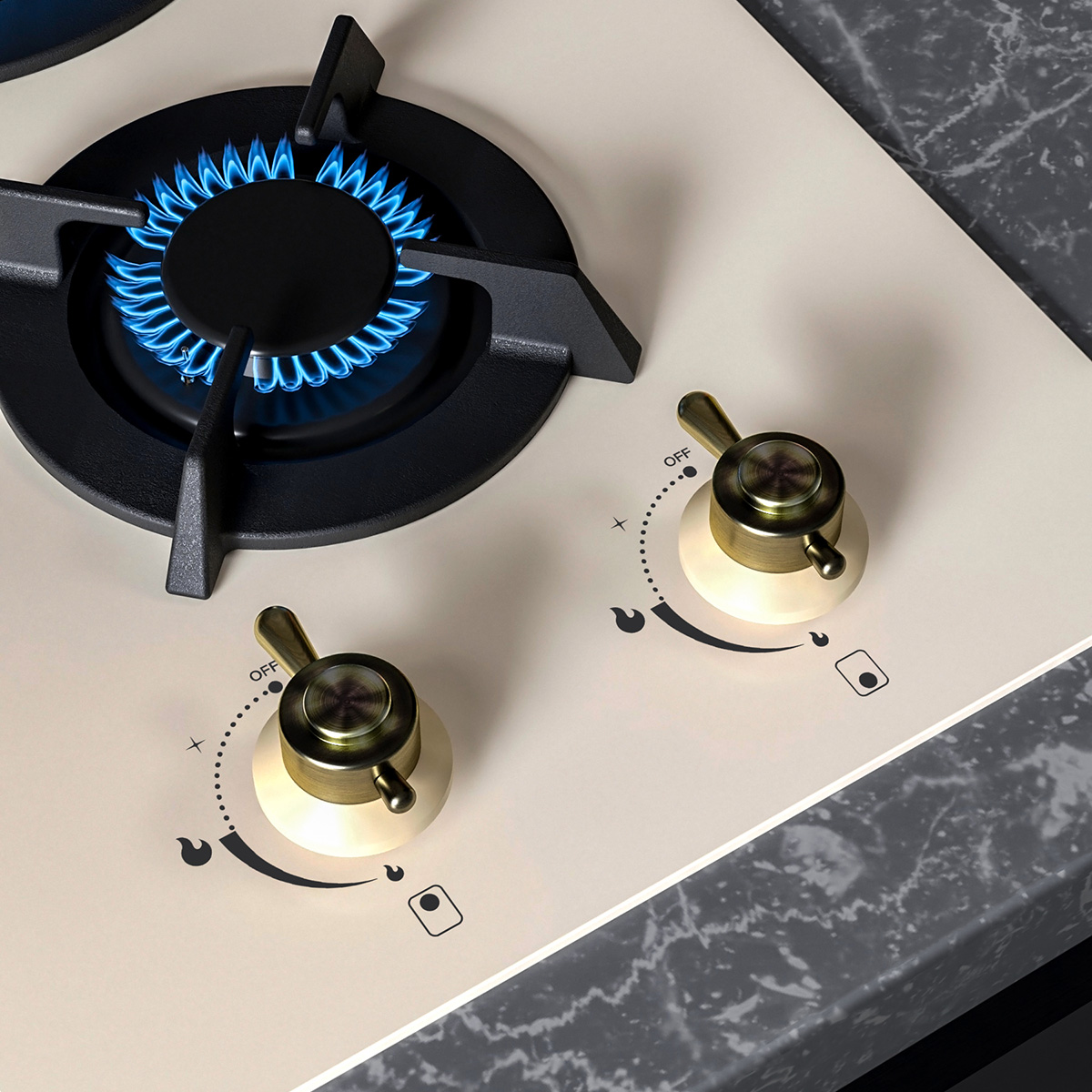 The working surface of this gas panel is made of beige tempered glass, which has high strength and resistance to external influences, and is also easy to clean after cooking.