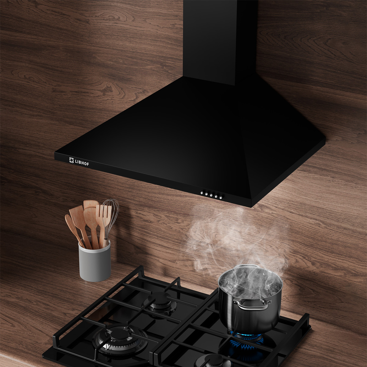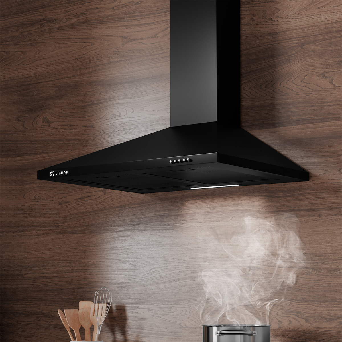 The Libhof LD-0650 black kitchen hood is the perfect solution for those who value style and functionality in their kitchen interiors. With a width of 50 cm, this black dome hood will perfectly fit into your kitchen, eliminating all unpleasant odors and excess moisture during cooking.