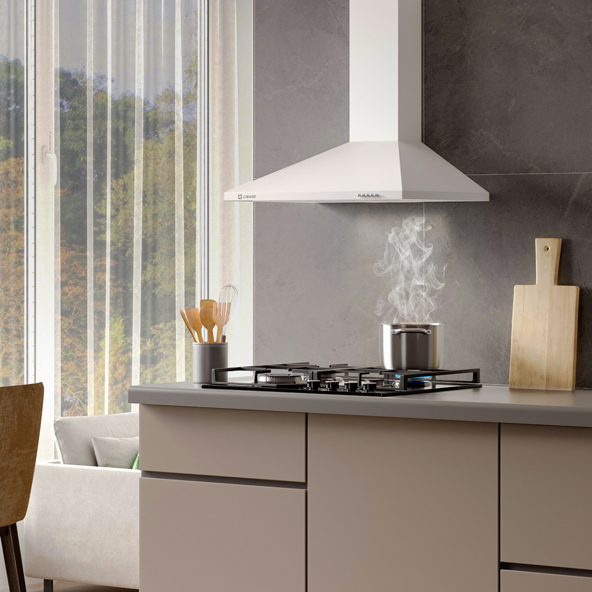 The Libhof LD-0650 white kitchen hood is the perfect solution for those who value style and functionality in their kitchen interiors. With a width of 50 cm, this white dome hood will perfectly fit into your kitchen, eliminating all unpleasant odors and excess moisture during cooking.