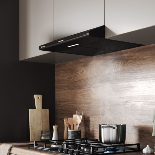 The Libhof LF-2550 black flat cooker hood is a compact and stylish model, ideal for small kitchens. Its width of only 50 cm makes it an unobtrusive element of the interior, and its easy installation allows you to quickly and simply mount the hood without unnecessary effort.