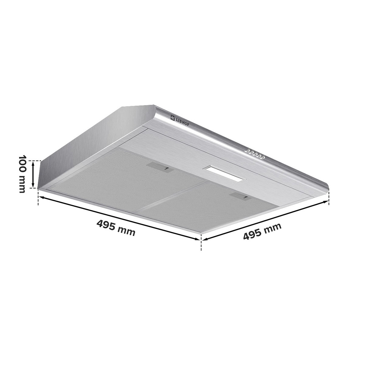 The Libhof LF-2550 silver flat cooker hood is a compact and stylish model, ideal for small kitchens. Its width of only 50 cm makes it an unobtrusive element of the interior, and its easy installation allows you to quickly and simply mount the hood without unnecessary effort.
