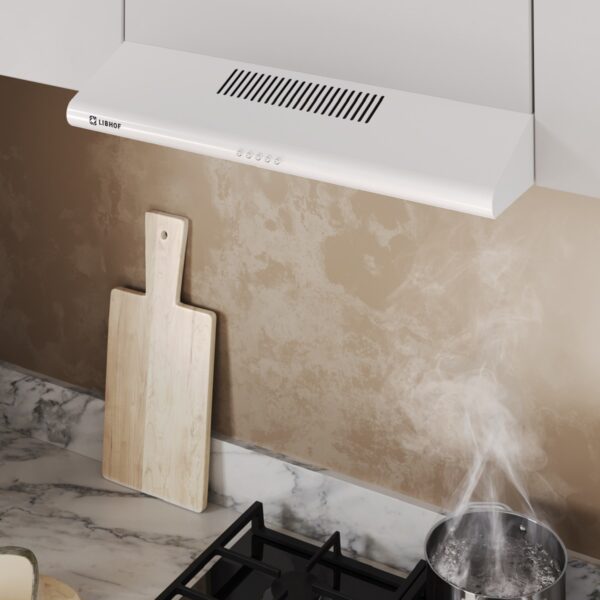 The hanging kitchen hood Libhof LF-2560 white is a stylish and functional solution for your kitchen. With a width of 60 centimeters, this model is ideal for standard kitchen sets, and thanks to its white color, it will harmoniously fit into any interior.