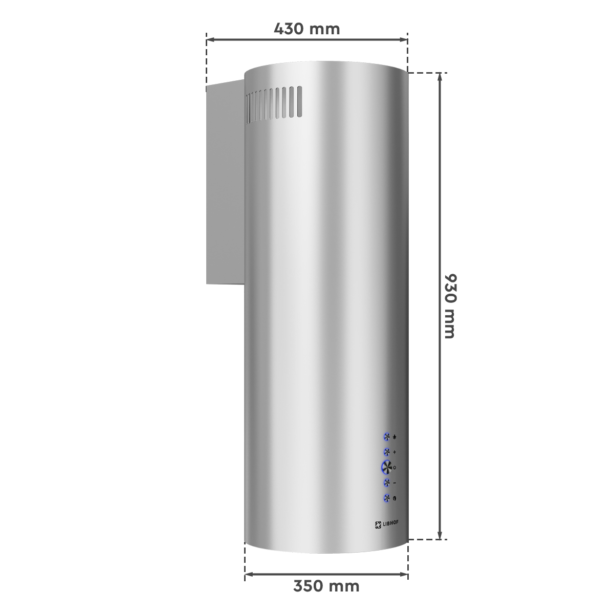 The Libhof LL-0935 silver kitchen hood is designed in a modern, minimalist style that will easily fit into any interior. The metal color of the hood will add an expressive accent to your kitchen and make it a prominent feature of your space.