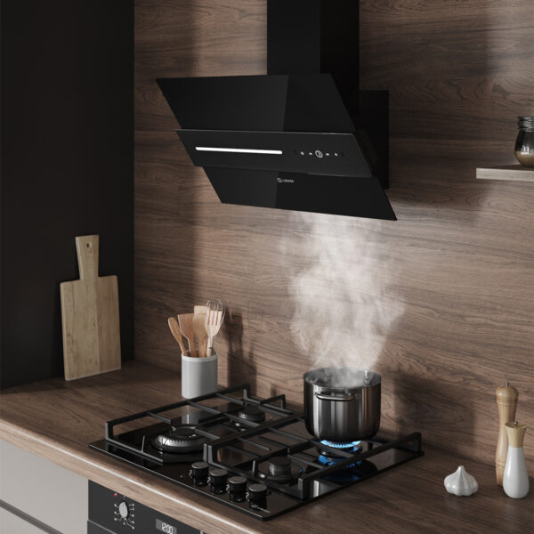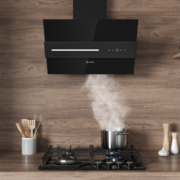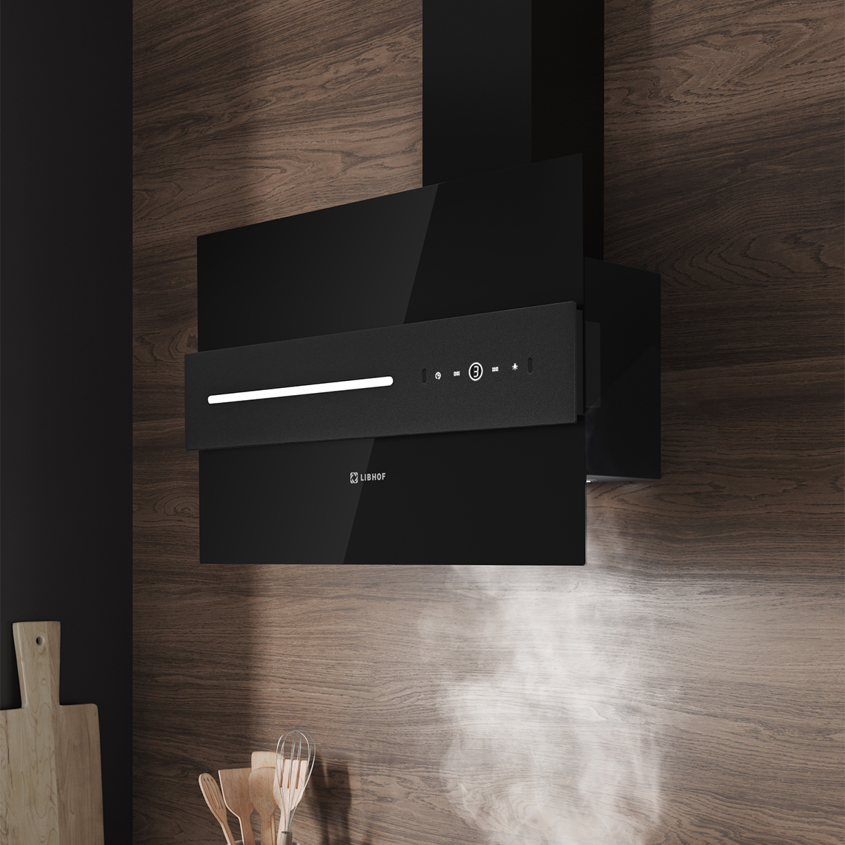 The elegant sloping hood Libhof LV-2960 black is a stylish solution for a modern kitchen that will not only transform the interior with its exquisite design, but also effectively purify the air during cooking.