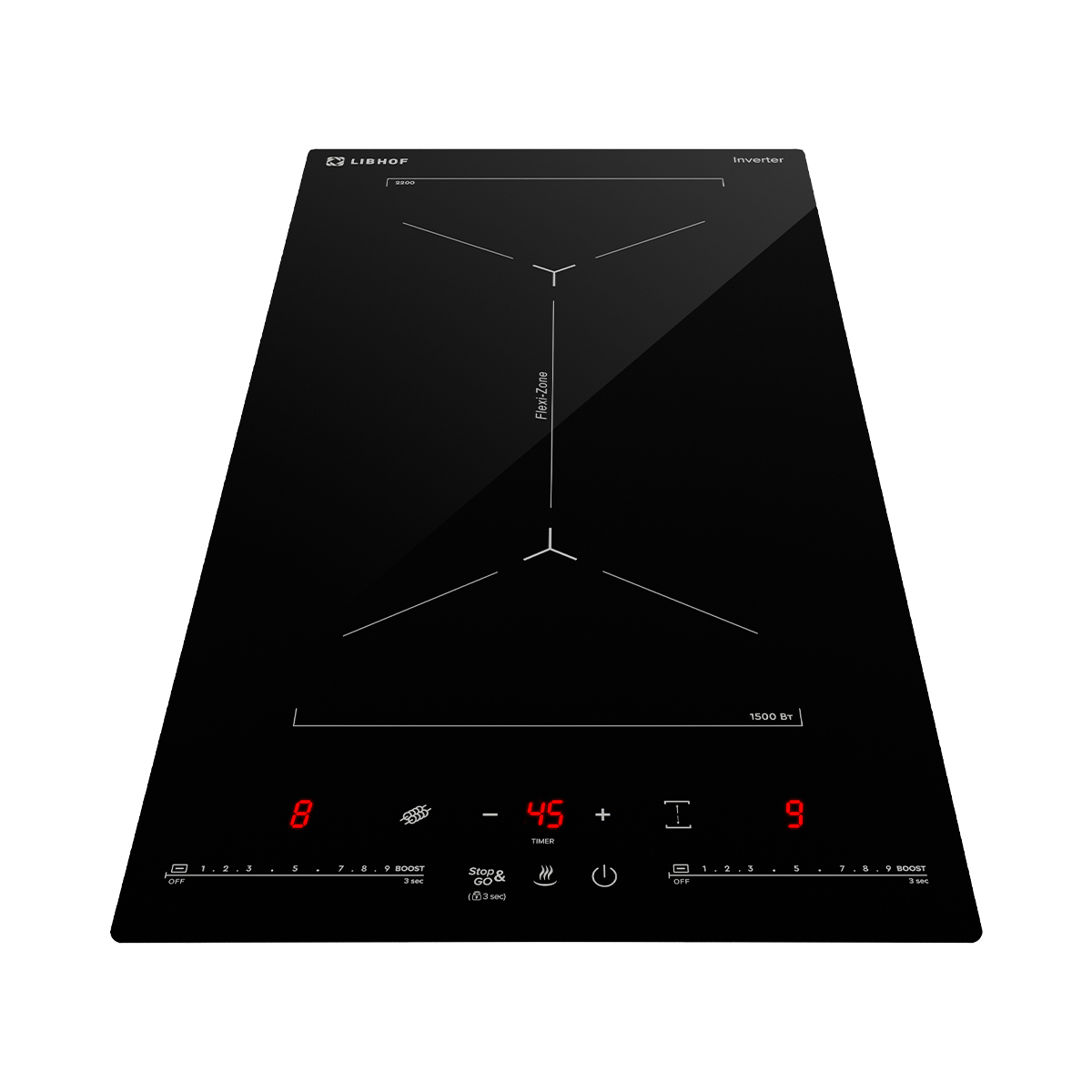 The Stop and go function allows you to briefly stop the panel operation and resume it with the previous settings. The Boost function provides fast heating, which is especially convenient if you need to quickly heat water or food to the desired temperature.