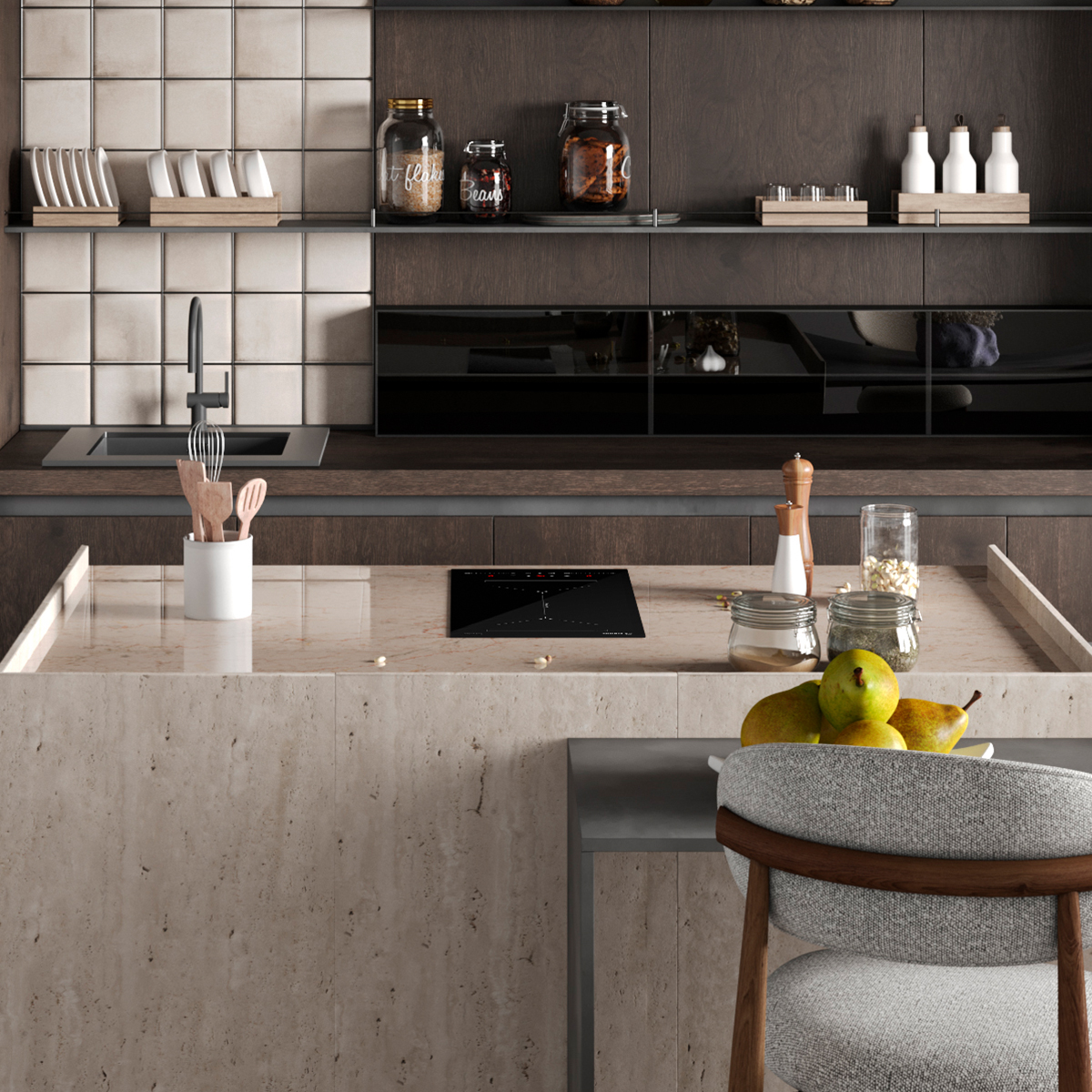 For safe use, the built-in induction panel is equipped with overheating protection, auto-shutdown, liquid spill protection, child lock on the control panel and residual heat indication.