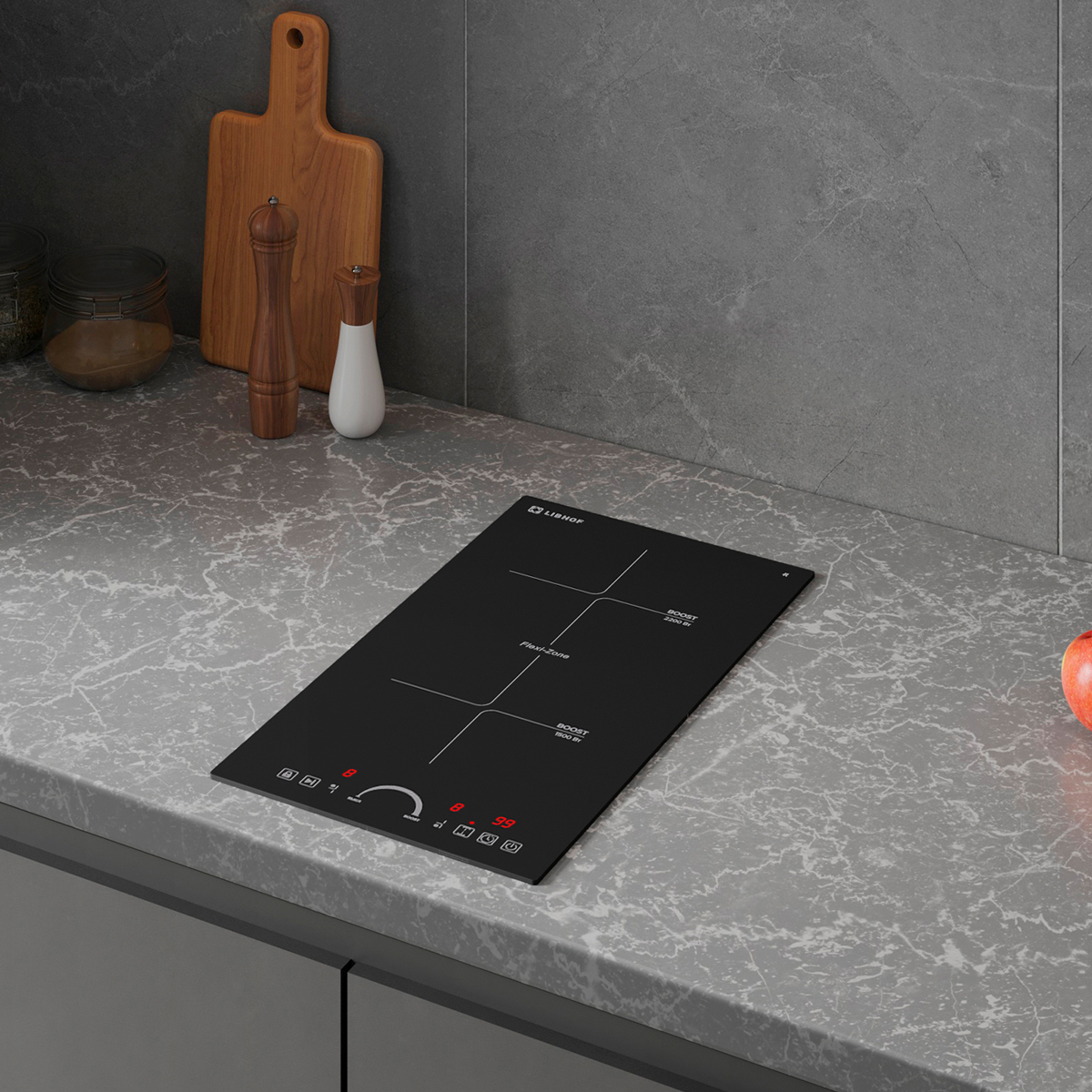 The Libhof ML-302I matt black induction hob provides constant heating and eliminates power fluctuations due to inverter technology. This hob is equipped with an automatic dish recognition function: the hob is activated only when a suitable container is placed on it.