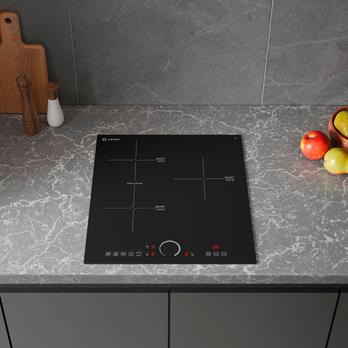 Thanks to the independent installation, the built-in induction panel with 3 burners