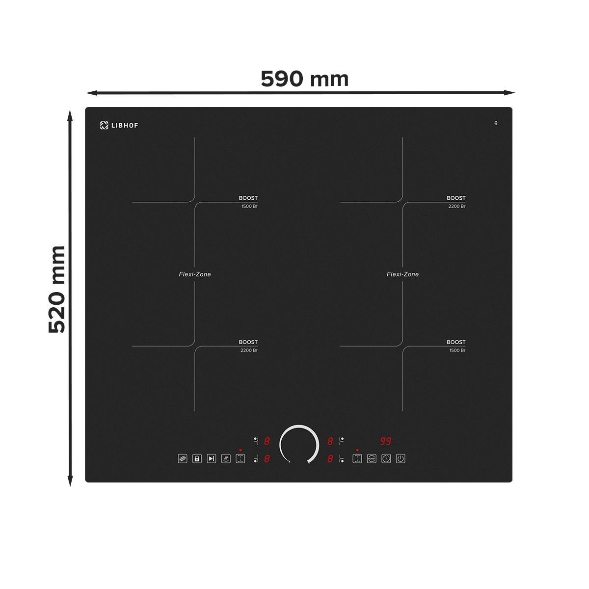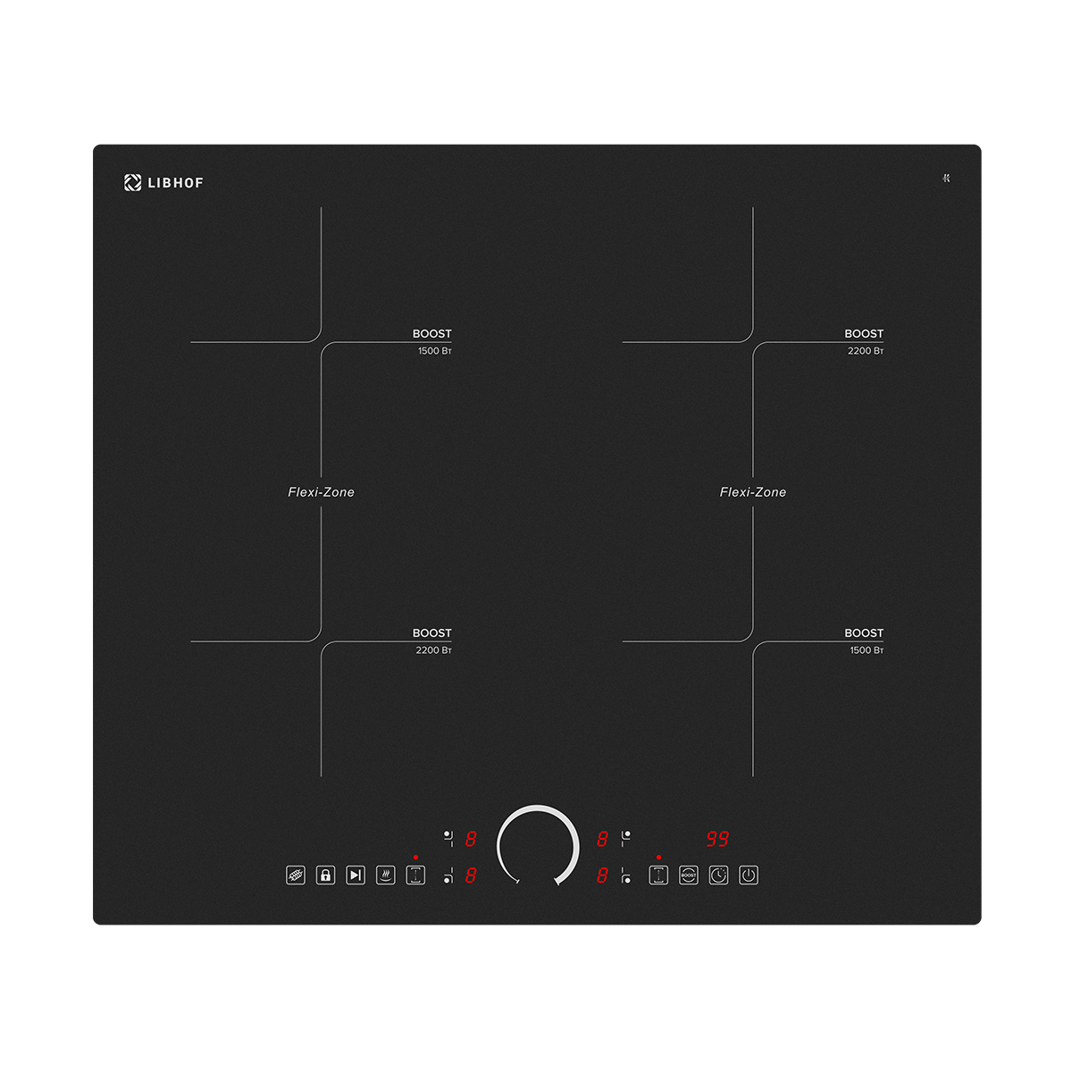 For safe operation of the hob, the control panel is locked, overheating protection, anti-boiling protection, automatic shutdown, as well as an indication of residual heat.