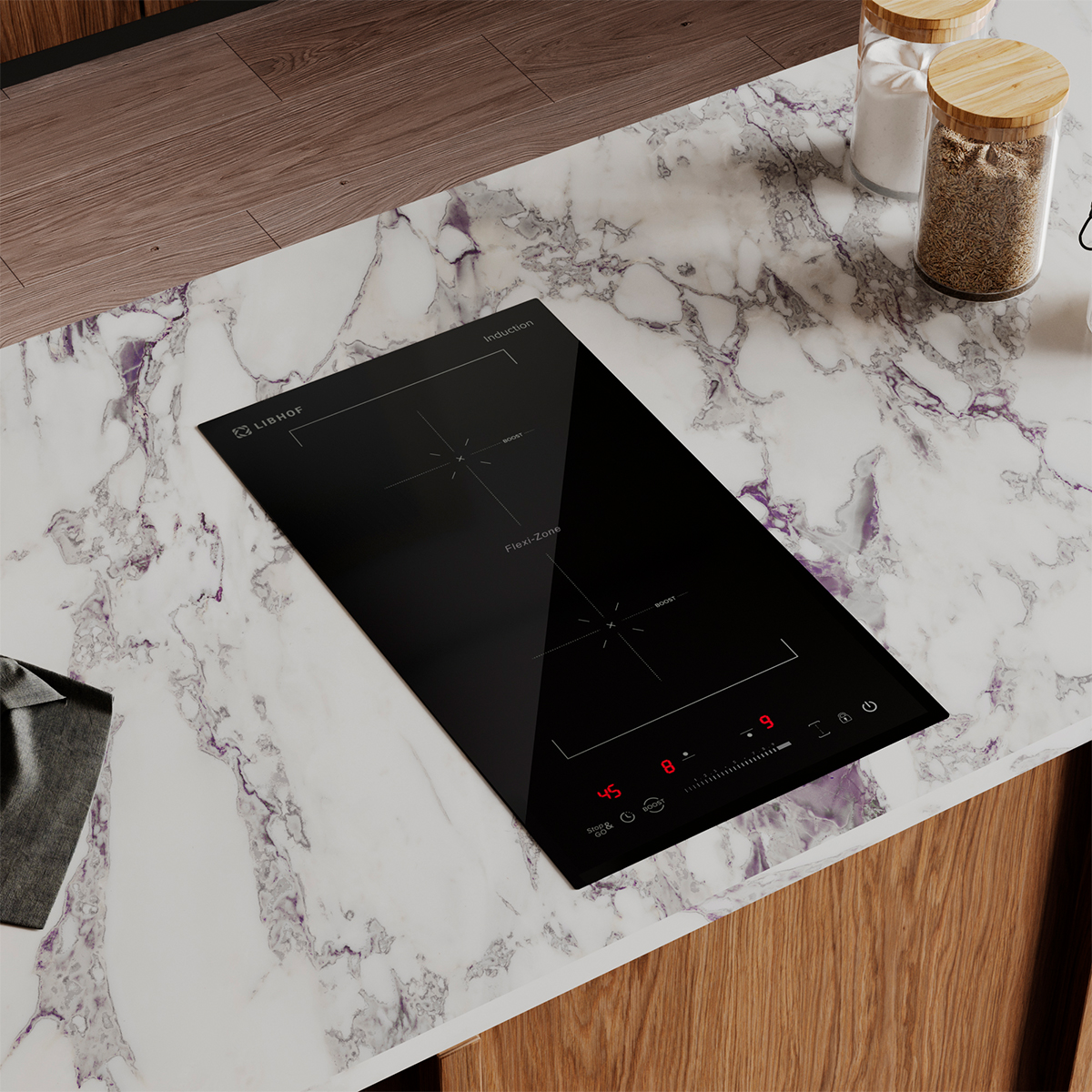 The hob is made of glass ceramic, a durable and lightweight material that looks great and is easy to clean.