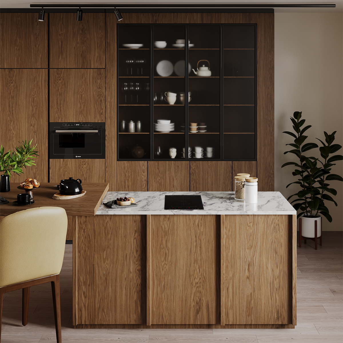The inverter induction hob provides constant heating without power fluctuations throughout the cooking process.
