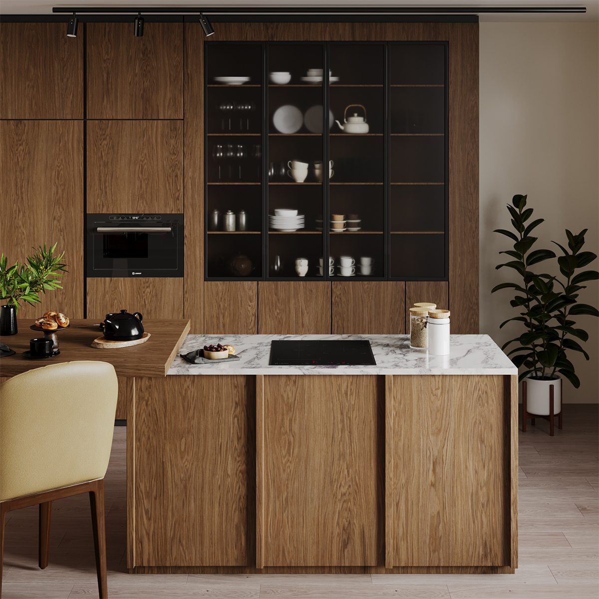 The inverter induction hob provides constant heating without power fluctuations throughout the cooking process.