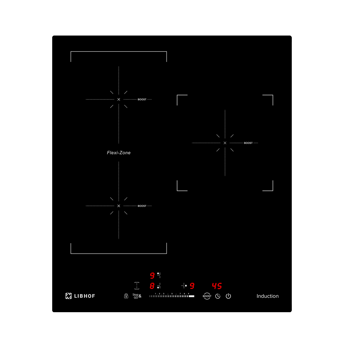 The Libhof PH-62453I induction hob includes 9 power levels, allowing you to fine-tune the temperature for each dish. In addition, the built-in timer can be set to 99 minutes, which allows you to automatically turn off each burner at a precisely set time.