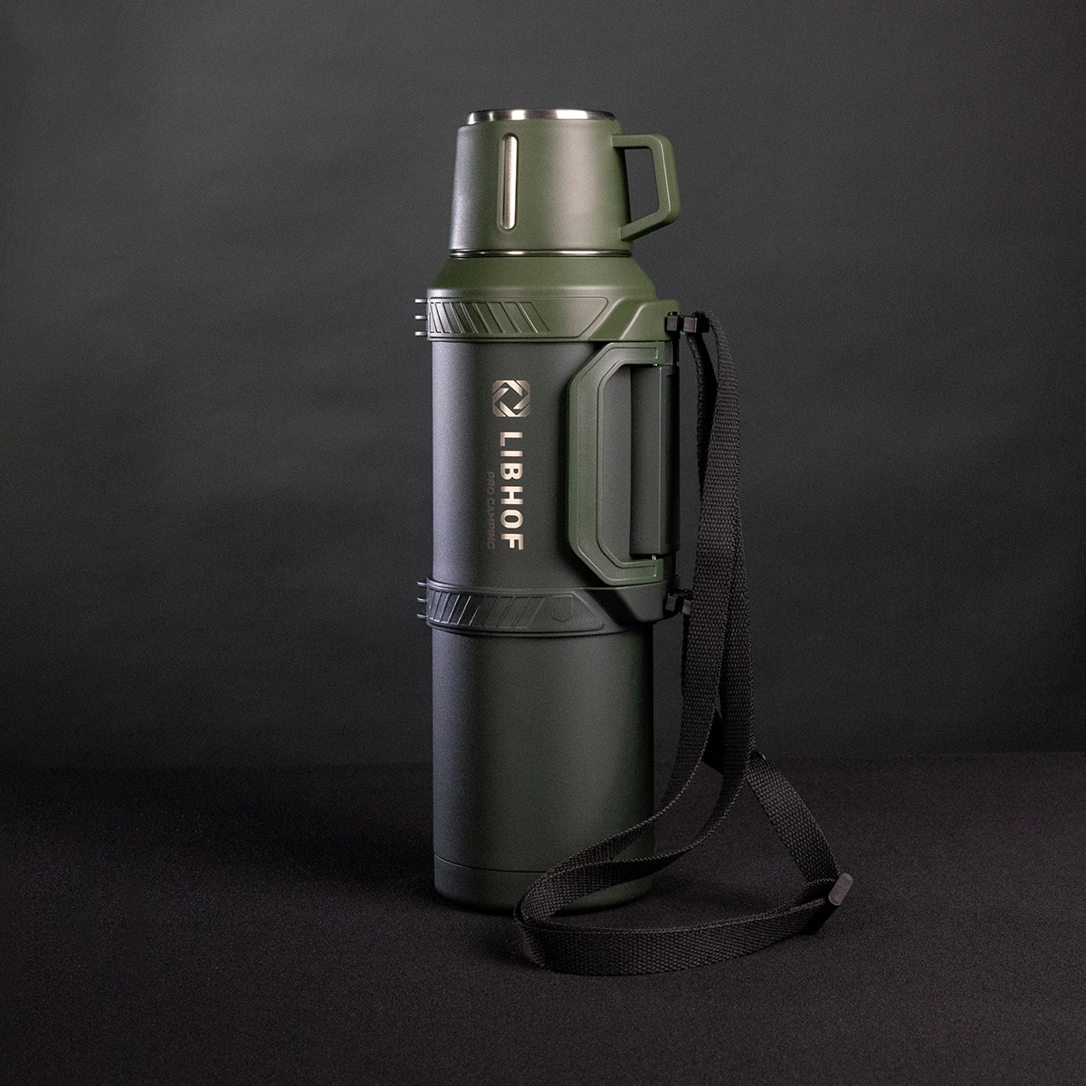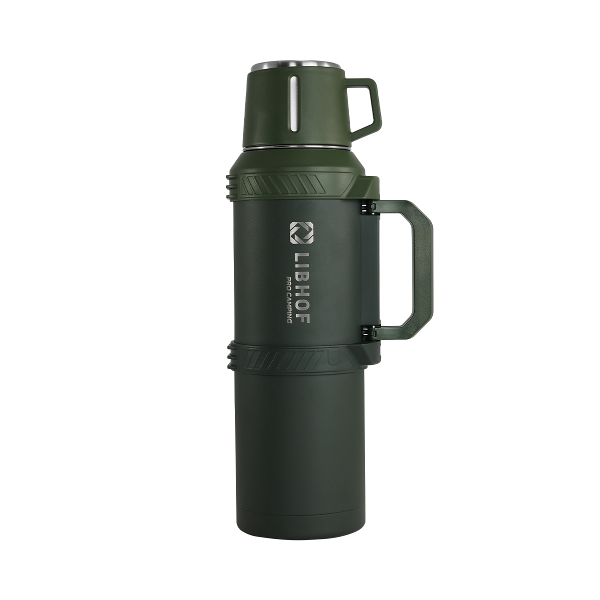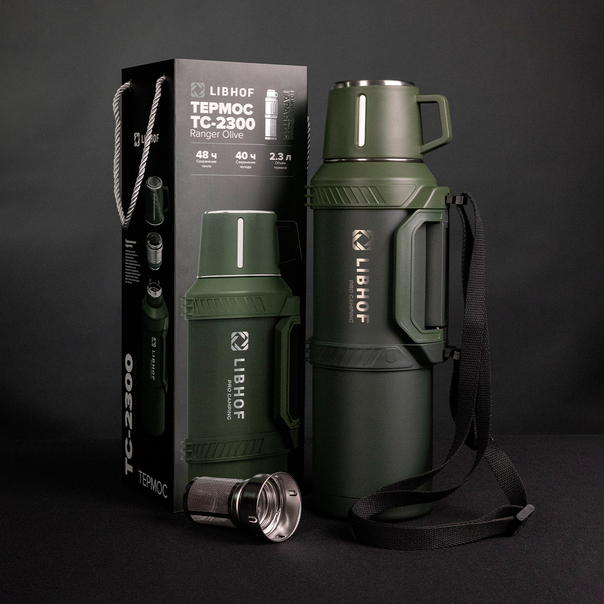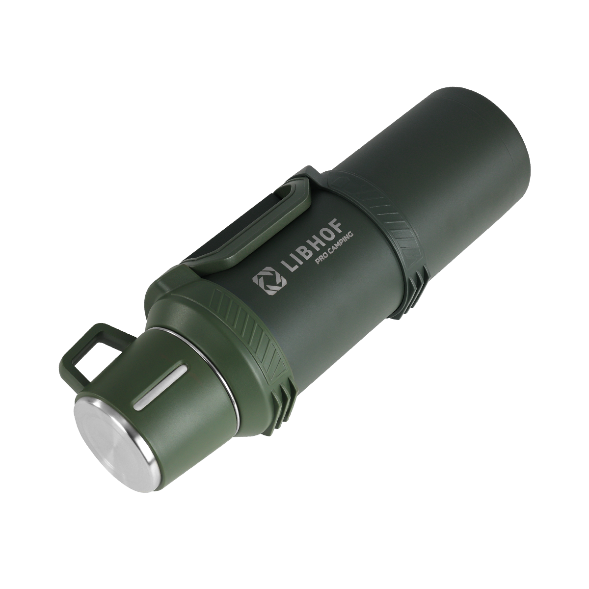 The Libhof TC-2300 ranger olive travel thermos is a thermos for hot and cold drinks designed for long hikes and outdoor activities.