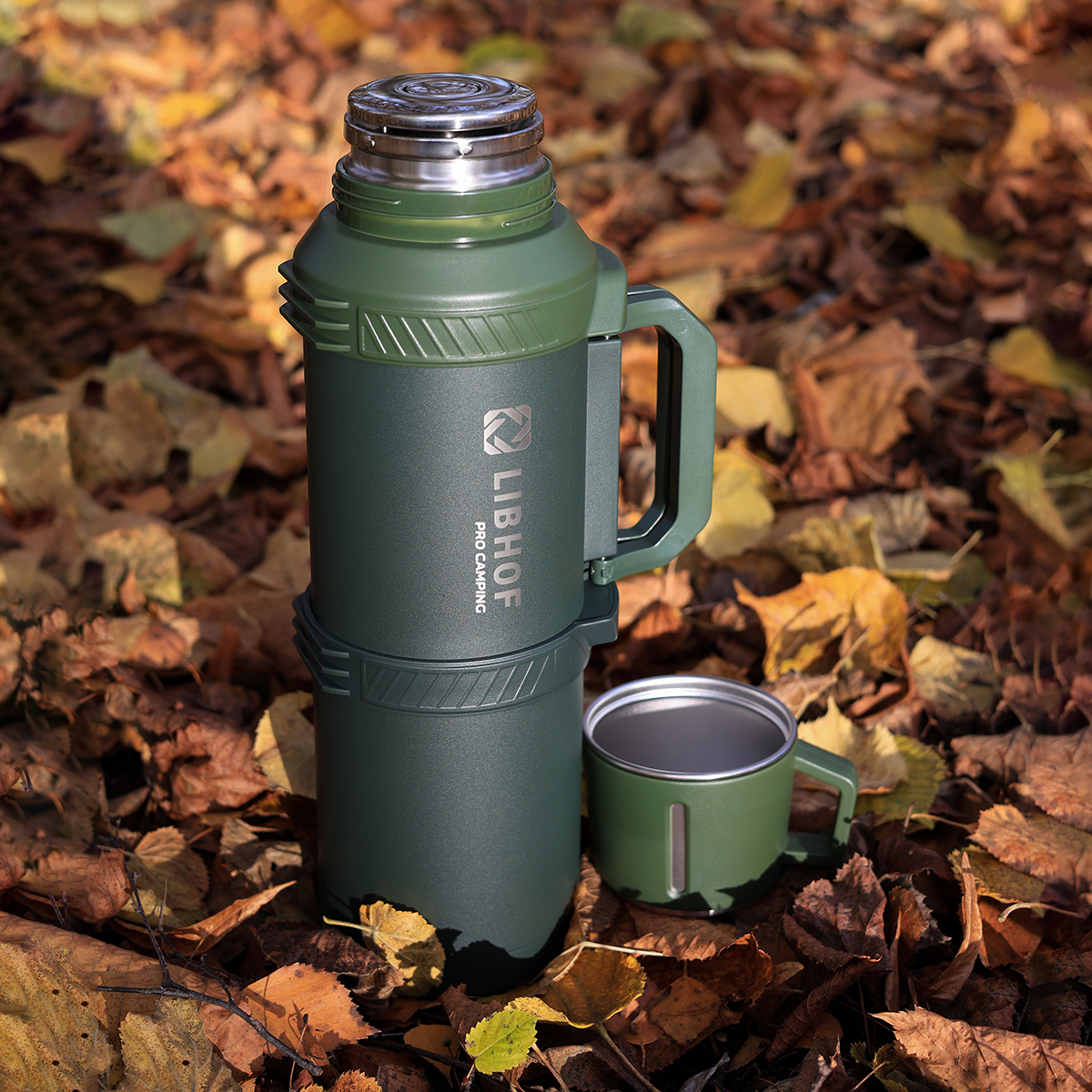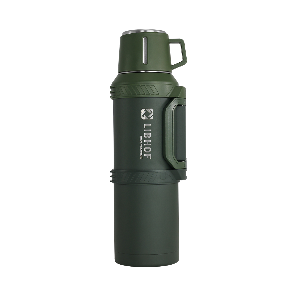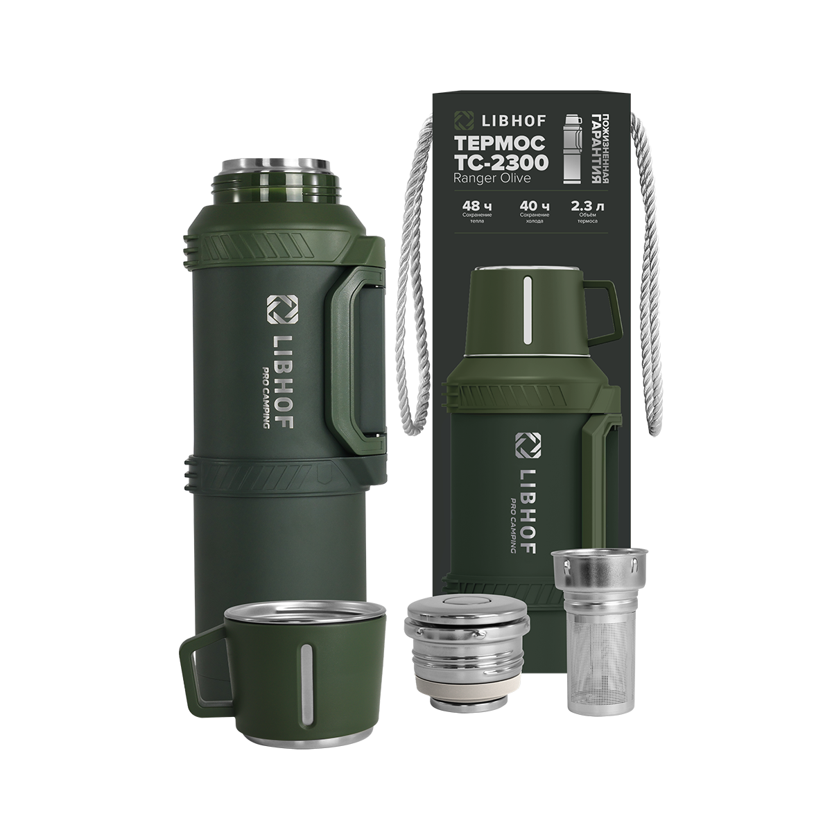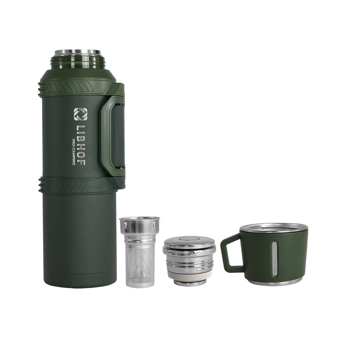 The Libhof TC-2300 ranger olive travel thermos is a thermos for hot and cold drinks designed for long hikes and outdoor activities.
