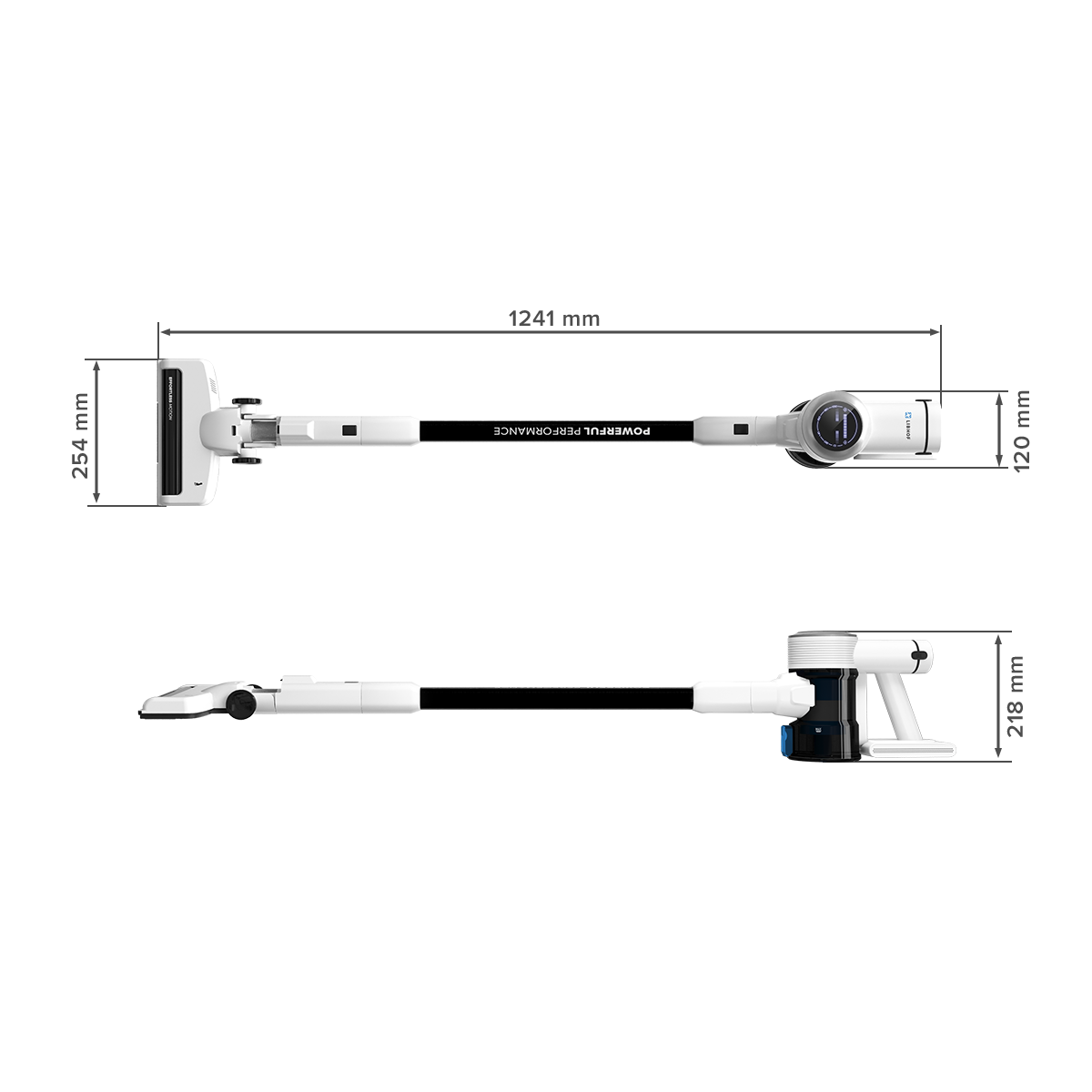 The main distinguishing feature of the model is the exceptional suction power of 36,000 Pa, thanks to which the vacuum cleaner effectively removes dust, debris, hair and animal hair. The device operates in three modes: eco (up to 40 minutes), standard (up to 24 minutes) and turbo (up to 15 minutes), which allows you to choose the optimal balance of power and operating time for specific tasks.